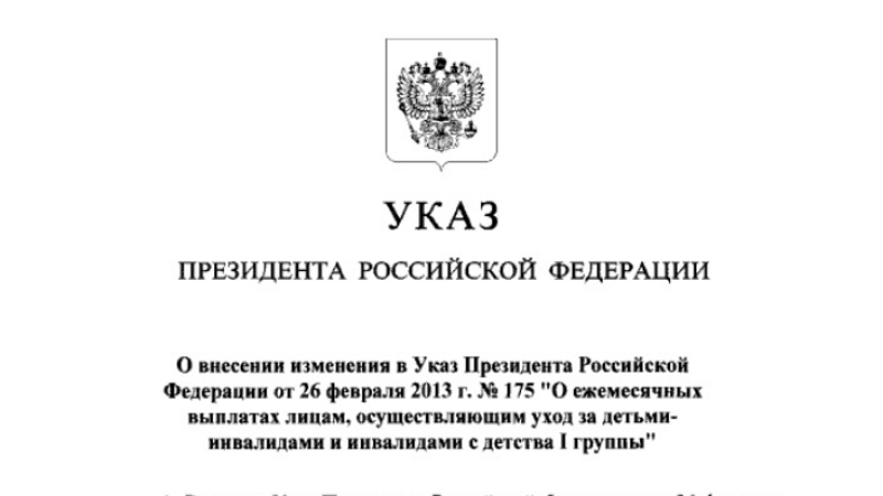 Пособия увеличатся с 5500 руб. до 10 000 руб. На них могут претендовать те, кто ухаживает за несовершеннолетними инвалидами и инвалидами I группы с детства. Указ вступит в силу 1 июля.