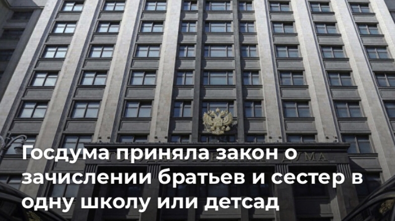 Согласно закону, проживающие в одной семье и имеющие общее место жительства дети имеют право преимущественного приема на обучение по основным общеобразовательным программам дошкольного образования и начального общего образования в государственные и муниципальные образовательные организации, в которых обучаются их братья или сестры.