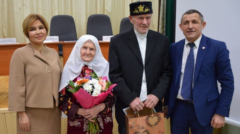 В завершении мероприятия Ильдус Фатихович и Гузель Любисовна поздравили семьи отметившие железную, бриллиантовую, изумрудную и золотую свадьбу и вручили грамоты отличившимся жителям села.