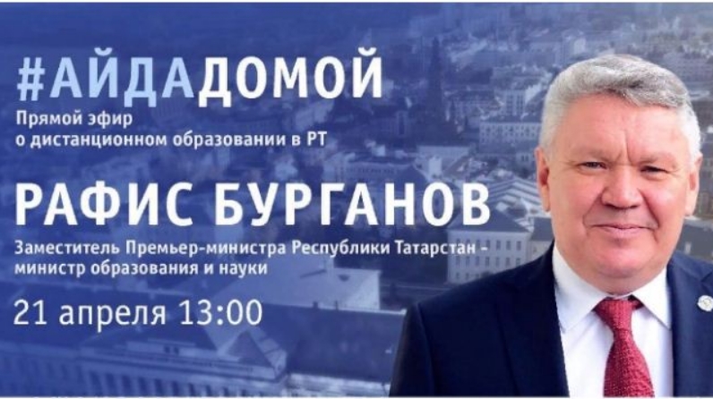 Сегодня в 13:00 состоится прямой эфир с заместителем Премьер-министра РТ, министром образования и науки Рафисом Бургановым. Тема беседы - дистанционное образование: