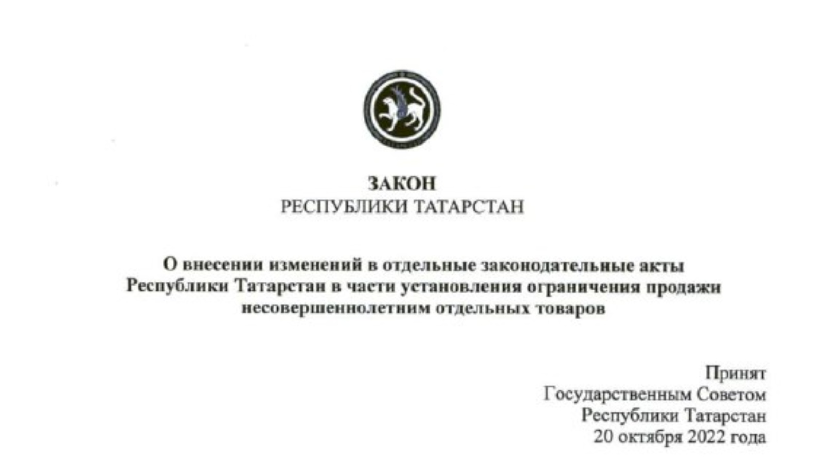 Законопроектом предлагается ограничить в Татарстане розничную продажу несовершеннолетним безалкогольных тонизирующих напитков, товаров, содержащих сжиженный углеводородный газ, а также установить административную ответственность за нарушение этих запретов и вовлечение несовершеннолетних в их потребление.