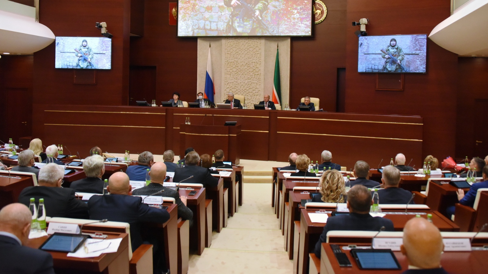 Председатель Государственного Совета Фарид Мухаметшин, в свою очередь, поблагодарил депутата Эдуарда Шарафиева, который принял решение добровольно, «по зову сердца» отправиться в зону специальной военной операции, Фархата Хуснутдинова, посещающего подшефный республике город Лисичанск, депутатов Государственного Совета Альберта Мухаметшина, Алсу Набиеву, Камиля Нугаева, Динара Бариева, сопровождавших гуманитарные грузы от Республики Татарстан в зону военных действий.
