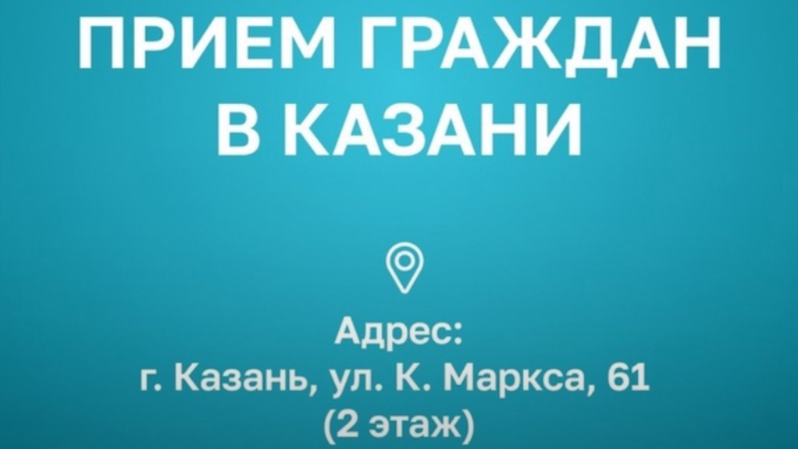 Личный прием пройдёт 6 февраля с 14:00 до 18:00 по адресу: г. Казань, ул. К. Маркса, 61 (2 этаж).